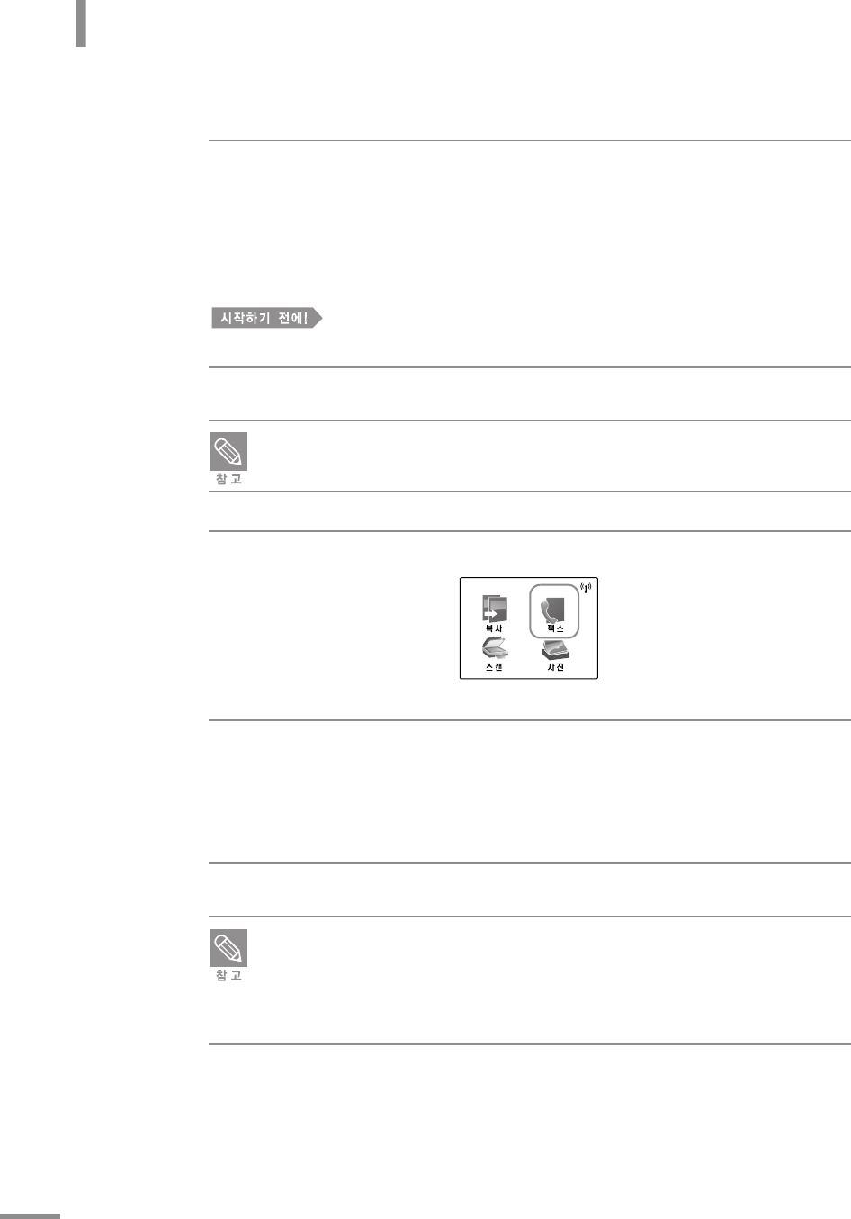 이때는 수신자에게 팩스 신호음이 들리면 팩스기의 시작 ( 또는 수락 ) 을 누르라고