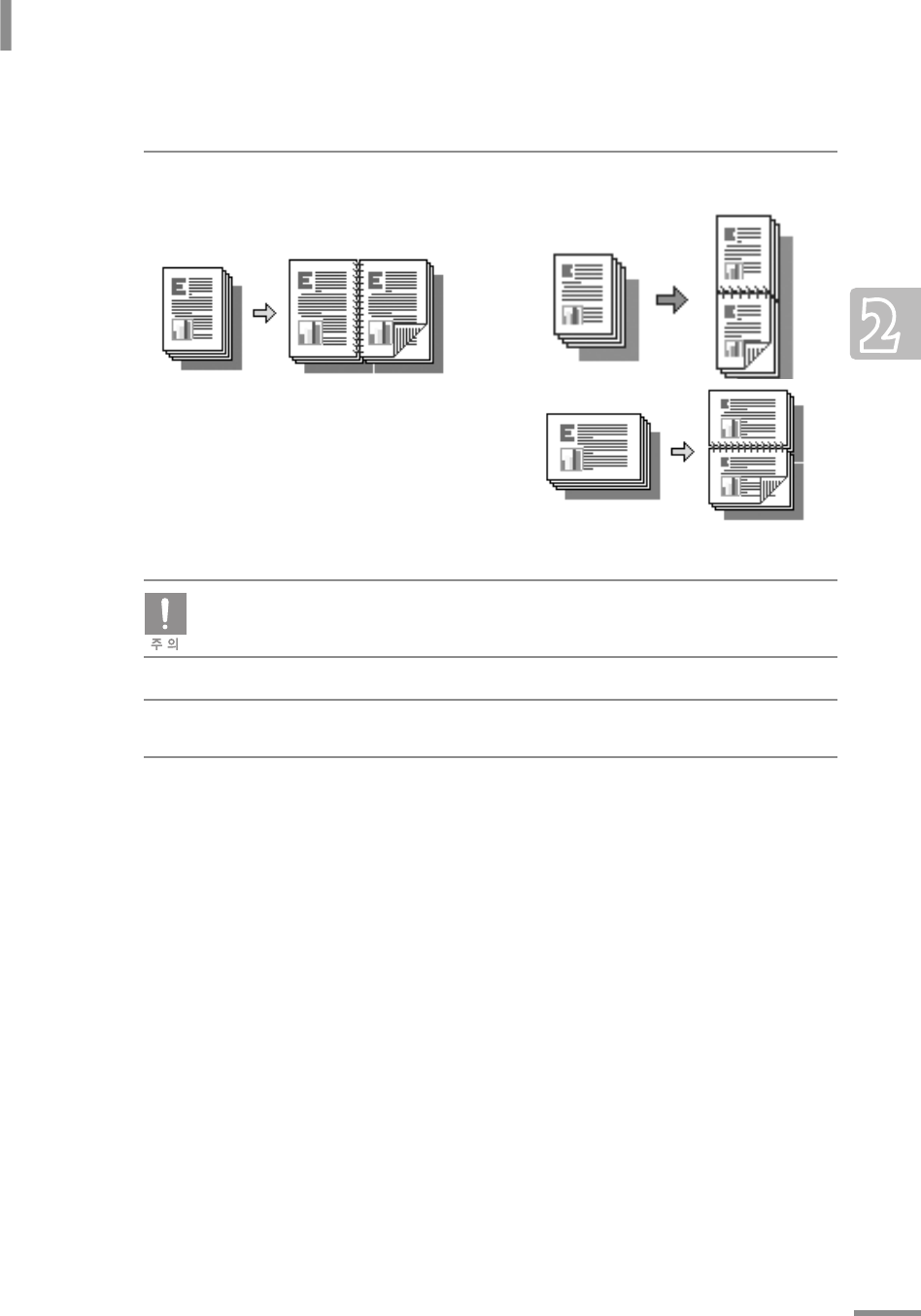 양면 인쇄를 할 수 있습니다 . 페이지를 넘길 방향을 선택하세요 .