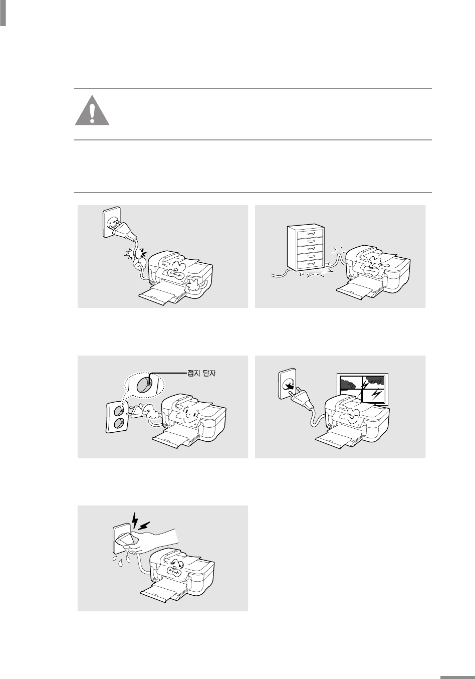 아래의 경고 사항은 지키지 않으면 사용자가 사망하거나 중상을 입을 수 있습니다 .